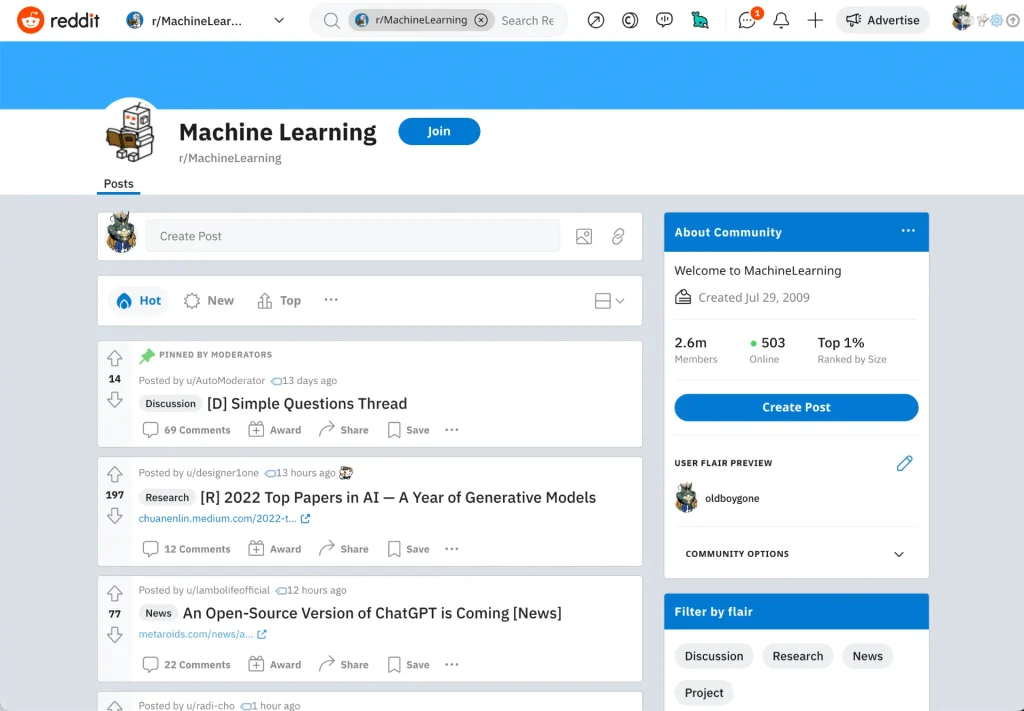 The largest sub on this list. For anything that falls under the large umbrella of Machine Learning. Most topics learn towards technical, however news and art are welcome here too.