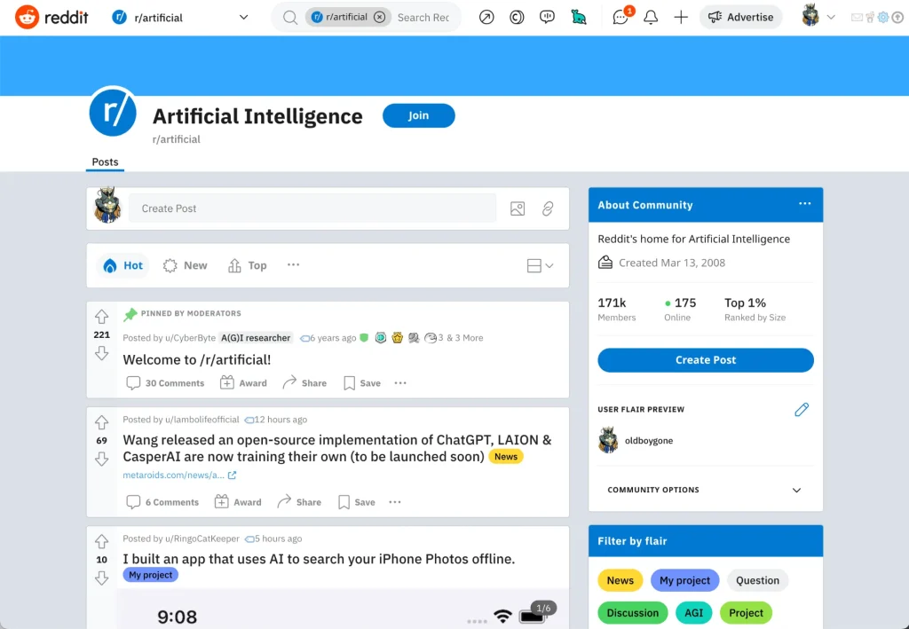 This is an older subreddit about any topic under the general category of "Artificial Intelligence".