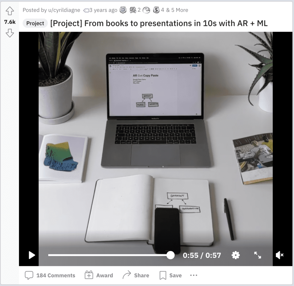 Top Post of All Time: [Project] From books to presentations in 10s with AR + ML