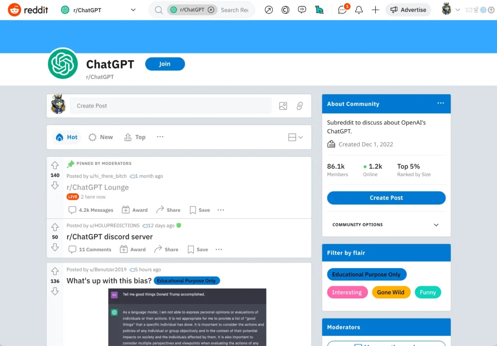 3. r/ChatGPT Best AI community for... ChatGPT (chat bot)