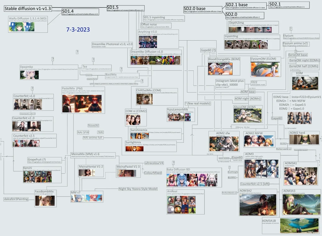 People continued to fine-tune NAI and merge the fine-tunes, creating the ecosystem of models we know today.
