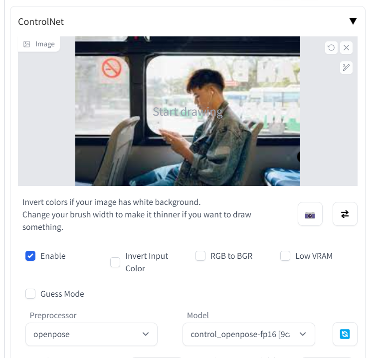 For example, if you're using the OpenPose model, the controller image will contain the actual pose you want.