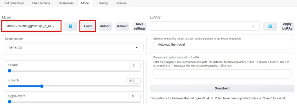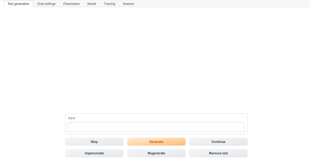 Go back to the Text Generation tab. Now you can start chatting by typing your prompts in the Input