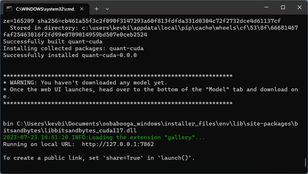 When you get the message Running on local URL: http://127.0.0.1:7860