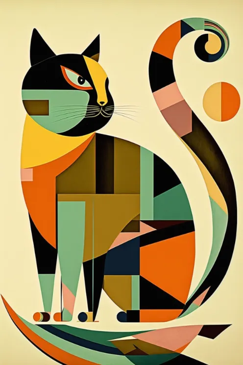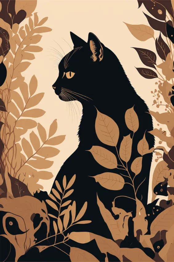 bohemian aesthetic illustration of a cat, minimal --ar 2:3