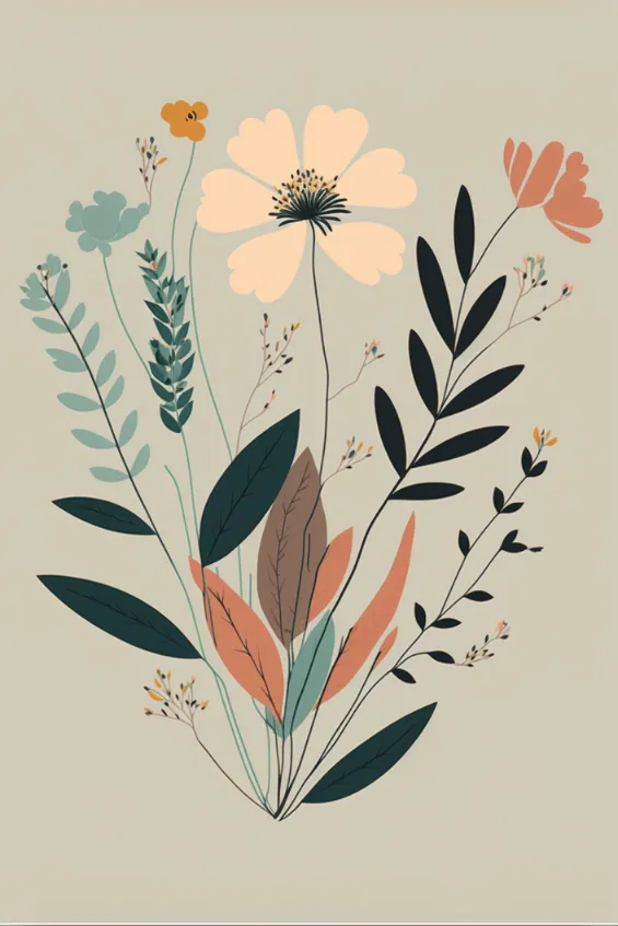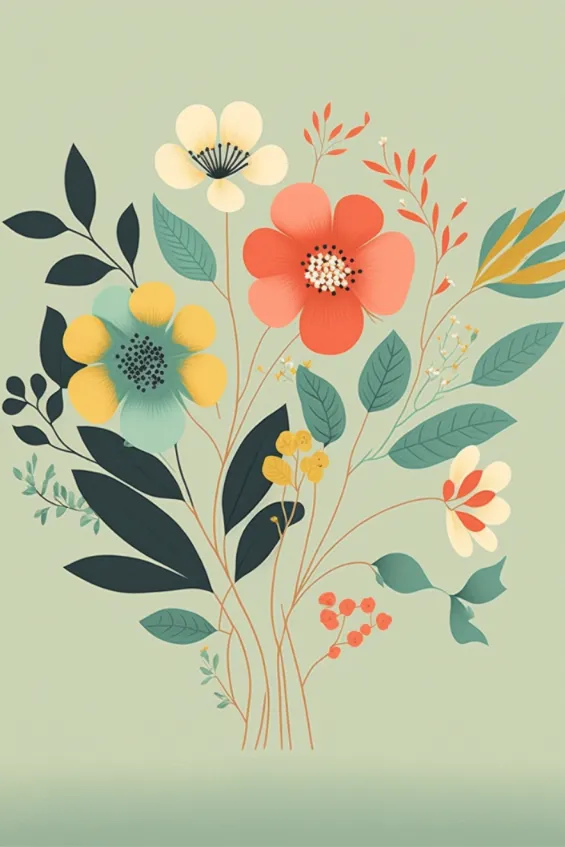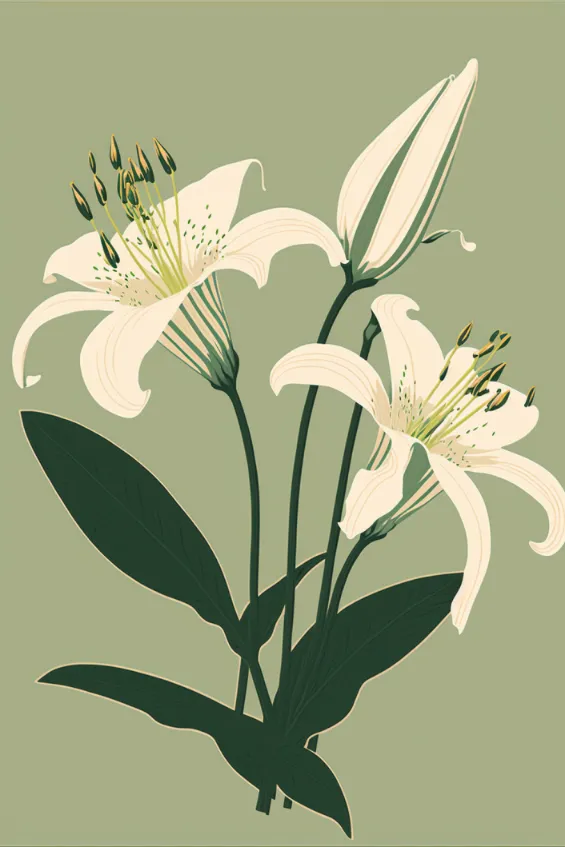 whimsical illustration of lillies, minimal, solid green background --ar 2:3