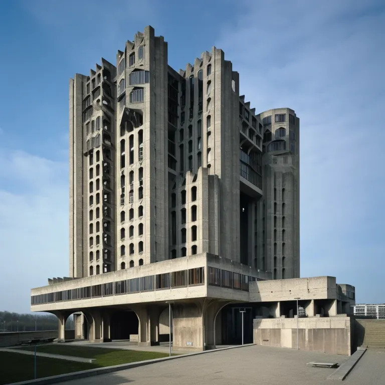 Hybrid Neo-gothic and brutalist architecture combination style --ar 16:9