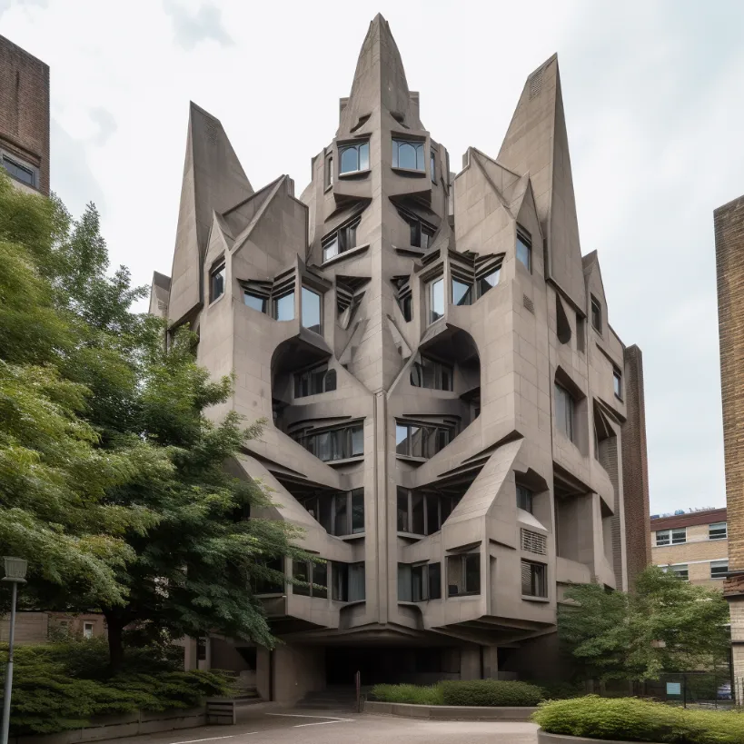 hybrid brutalist and Victorian Gothic architecture, angular geometric, --v 5