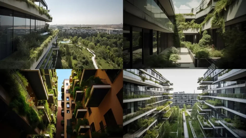 Eco-friendly, terraced building with lush rooftop gardens and fluid lines, sublime and visionary, designed by Stefano Boeri, photo by Hélène Binet --ar 16:9 --c 1 --s 90
