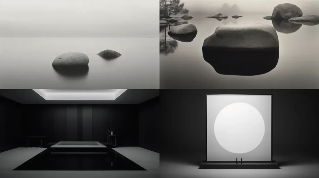 Hiroshi Sugimoto photography , a serene scene with a minimalist composition, subtle gradations of light, and a captivating interplay between the ephemeral and the eternal --ar 16:9 --s 70 --c 2