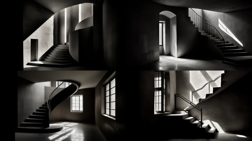 photo by Hélène Binet, upward angle, delicate balance of light and shadow, rich textures, soul and essence of a space, very visually captivating --ar 16:9