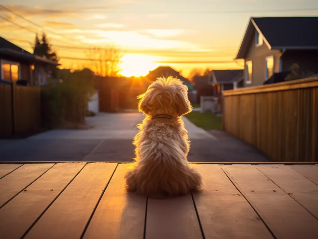 Back view of a dog while waiting for his owner outside the house, shot on Afga Vista 400, sunset --ar 4:3 --v 5.2