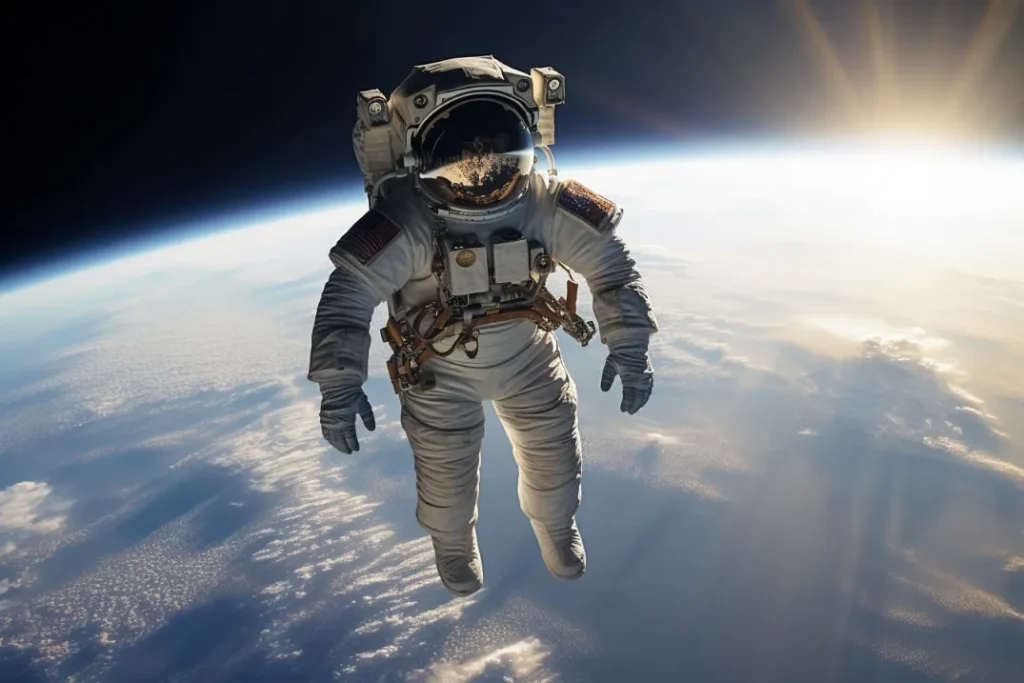 High angle photo of an astronaut in space looking at earth --v 5.2 --ar 3:2