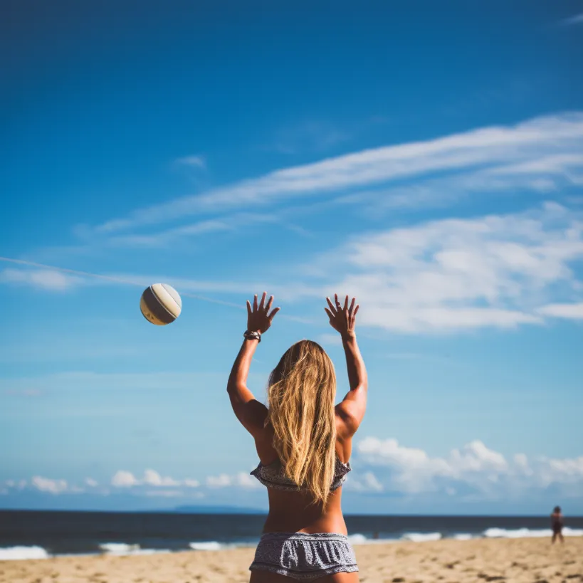 photo of a girl playing volleyball at the beach, afga vista 200, sunny --v 5.2