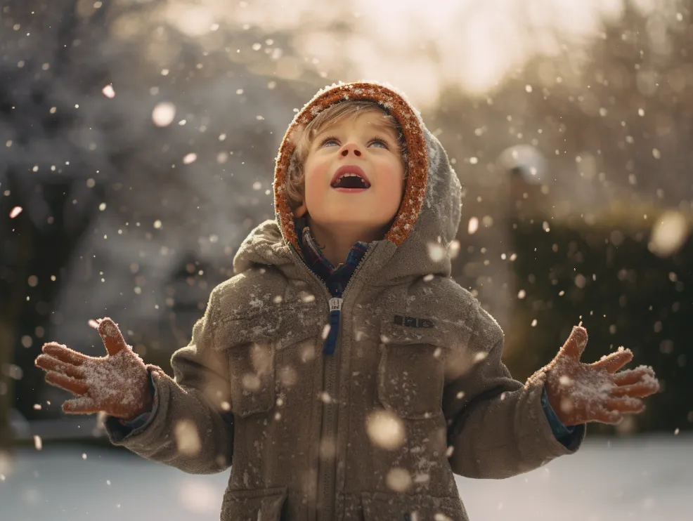 photo of a kid playing , snow filling the air --ar 4:3