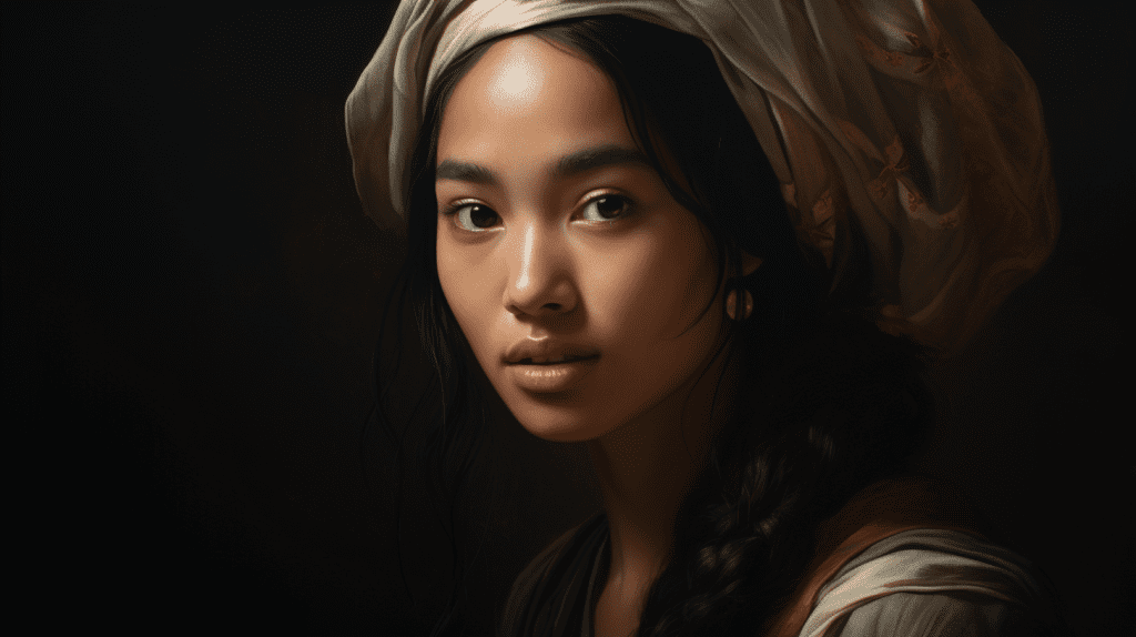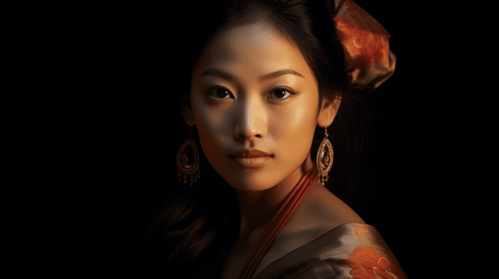 asian woman, Rembrandt Lighting --no painting --ar 16:9