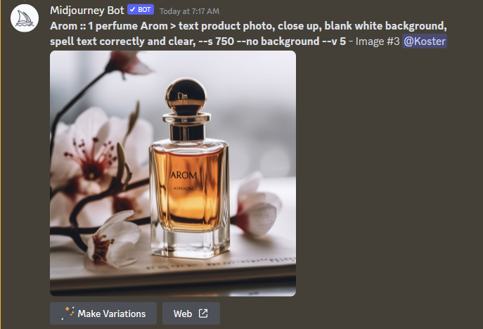Prompt weights and sequencing of prompts are very important to add text to your product. Usually, the text that you wanted to input will not appear on a single try and you need to reroll it multiple times.