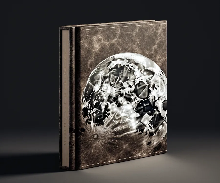 photography of 11.11 photo album, moon details, moon goddess themed, planets, product photography, on a white background, high resolution, studio lighting, with shadows, modern, minimalistic, neutral color pallete, --s 250 --v 5