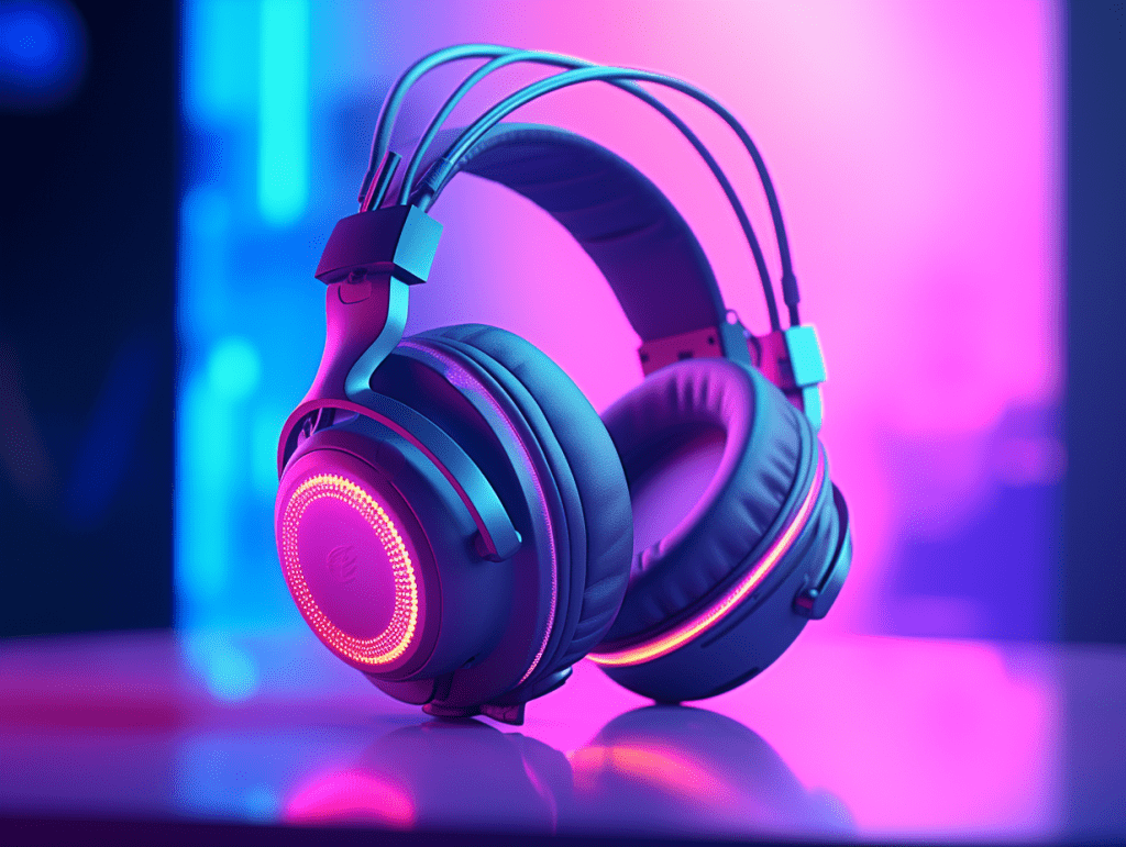 commercial photography of cyberpunk headphones, pastel neon background, 32k uhd, triadic color grading --s 75 --v 5.2 --ar 4:3