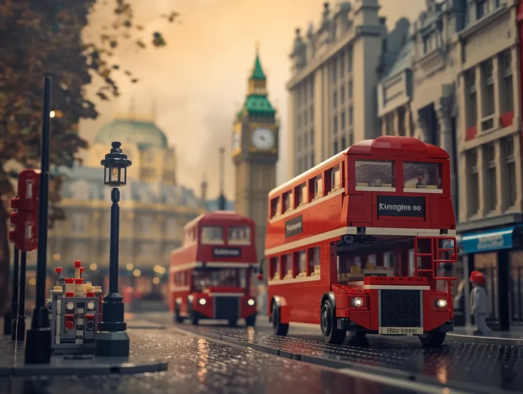 london made with Lego studio photography, product photography, light backgorund, photo vintage color grading, film lightning --q 2 --v 5.2 --ar 4:3