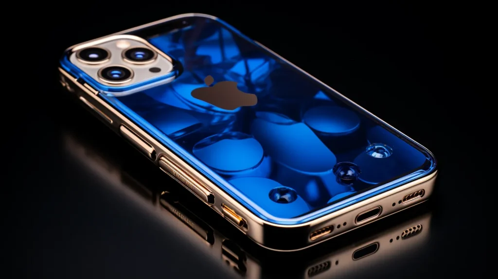 macro product photography of an sapphire iphone 14 pro max, studio lighting --ar 16:9 --q 2 --v 5.2