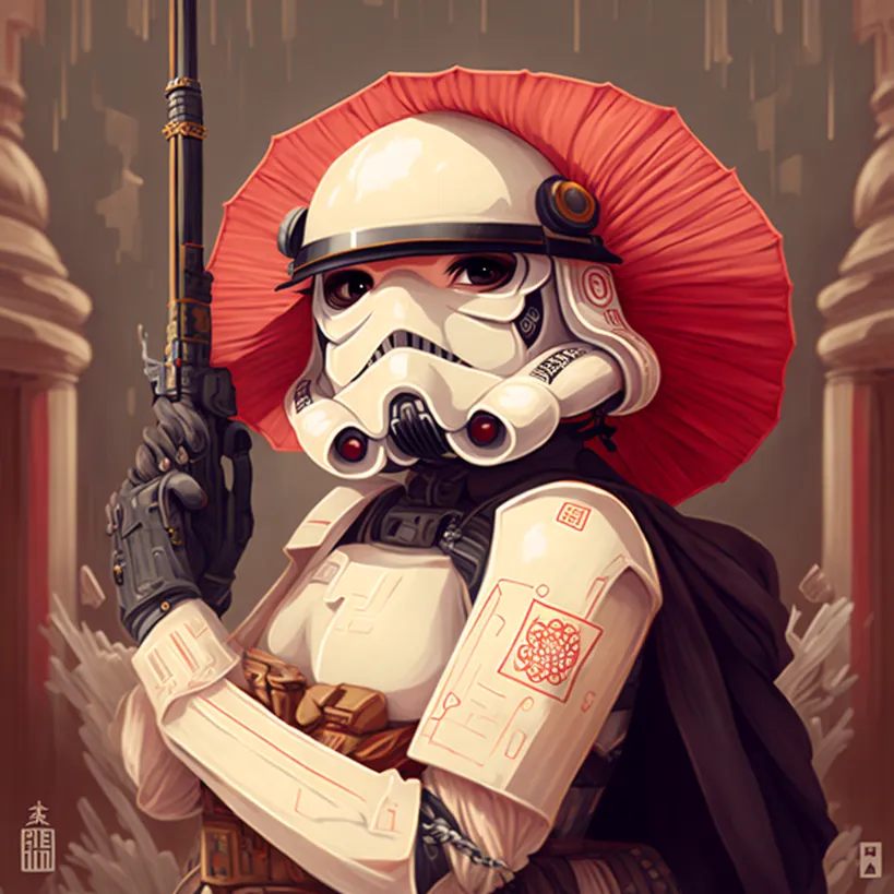 studio ghibli anime, stormtrooper::1 3d render realistic::-0.5 | ![]() ![]() | More of the same |