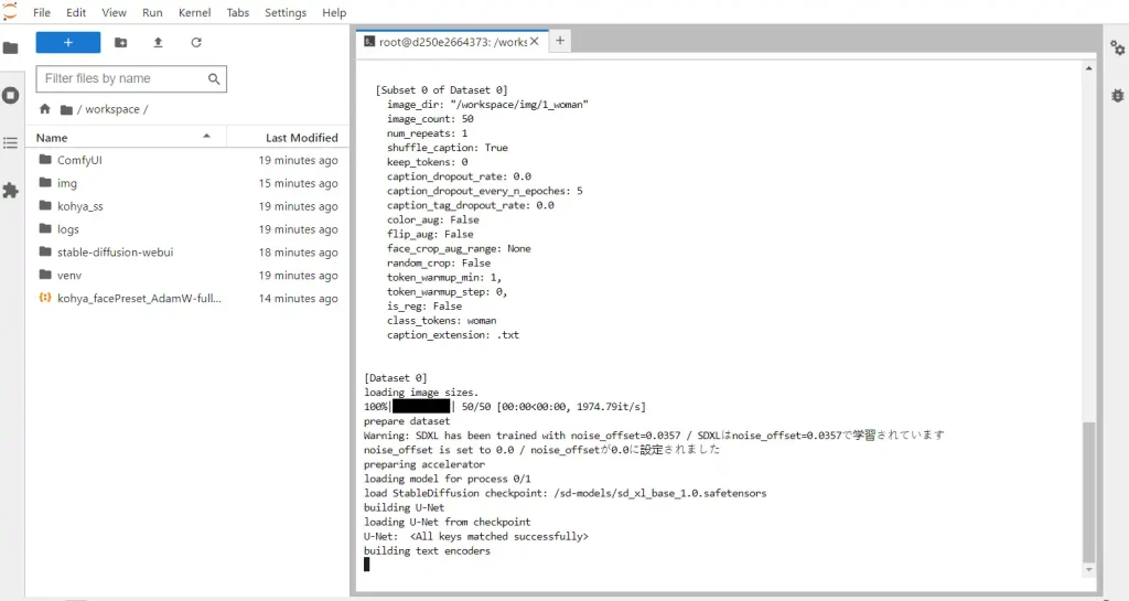 tail -f /workspace/logs/kohya_ss.log