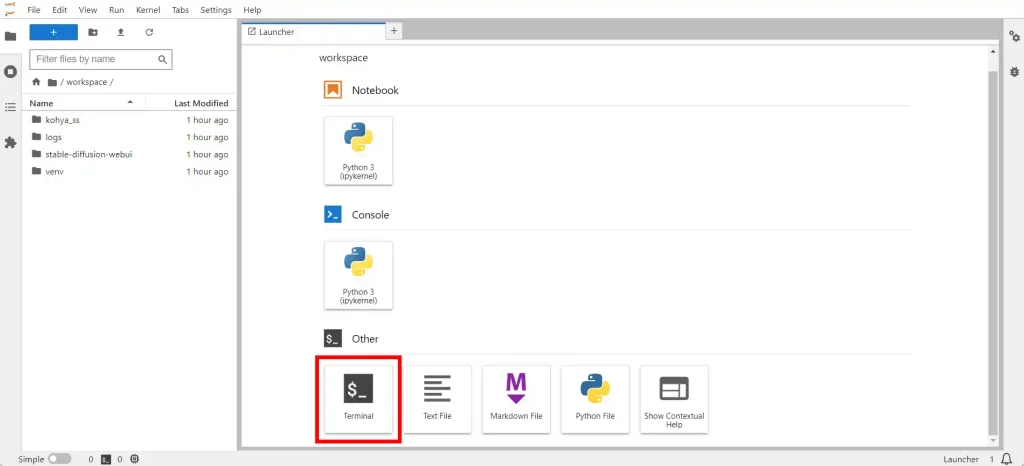 In JupyterLab, open a new Terminal. Enter the command: