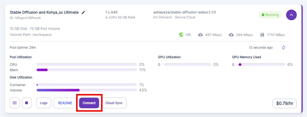 Go to Runpod, click Connect