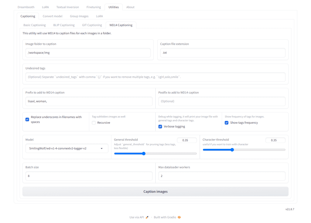 subtab, then click WD14 Captioning