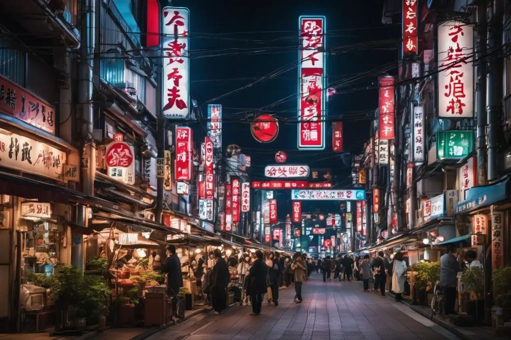 breathtaking night street of Tokyo, neon lights. award-winning, professional, highly detailedanime, cartoon, graphic, text, painting, crayon, graphite, abstract glitch, blurryAnime