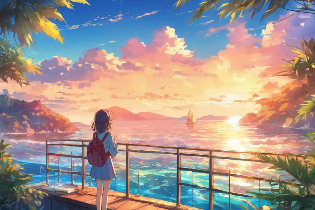 anime artwork a girl looking at the sea, dramatic, anime style, key visual, vibrant, studio anime, highly detailedphoto, deformed, black and white, realism, disfigured, low contrastDigital Art / Concept Art