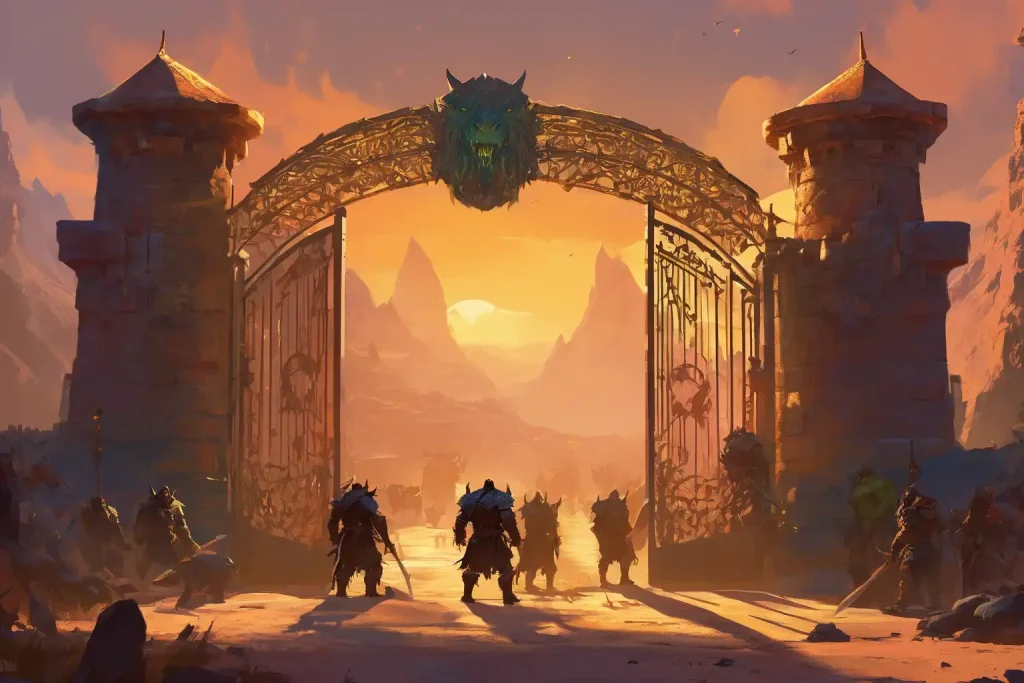 concept art of orcs in front of a gate, clouds. digital artwork, illustrative, painterly, matte painting, highly detailed, cinematic compositionphoto, photorealistic, realism, uglyEthereal Fantasy Art