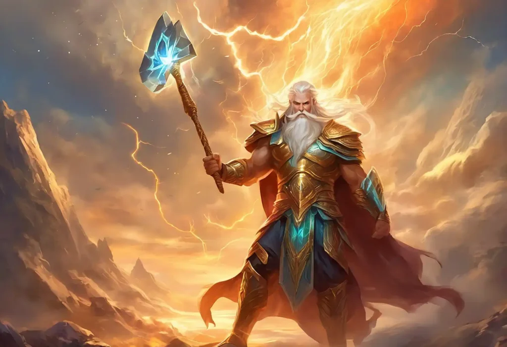 ethereal fantasy concept art of thunder god with hammer. magnificent, celestial, ethereal, painterly, epic, majestic, magical, fantasy art, cover art, dreamyphotographic, realistic, realism, 35mm film, dslr, cropped, frame, text, deformed, glitch, noise, noisy, off-center, deformed, cross-eyed, closed eyes, bad anatomy, ugly, disfigured, sloppy, duplicate, mutated, black and whitePhotography