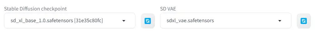 Now you will see the VAE dropdown next to your checkpoint model dropdown: